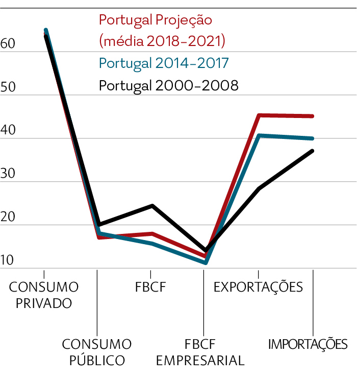 Peso das componentes da despesa no PIB em Portugal